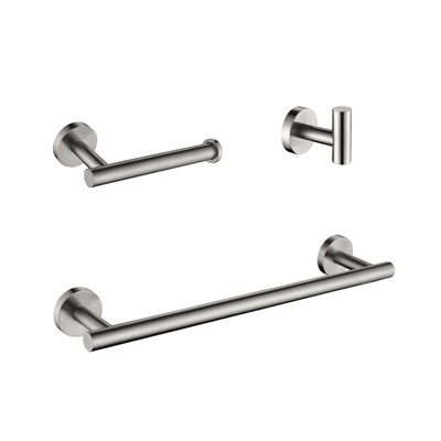 Features:- Practice & Versatile - 5-Piece Bathroom Hardware Set contains 1 pcs tower rack, 1 pcs toilet paper holder, 1 pcs towel hook, and 2 pcs adhesive hooks to make full use of your empty wall & keep bathing accessories well organized- 304 Stainless Steel - Made of heavy-duty 304 stainless steel, the hardware set provides excellent resistance to rust and corrosion, ensuring durability in a humid environment; Round shape without sharp edges avoids scratching your hands for safety- Modern Style - The hardware set combines clean lines with brushed nickel plating to create a simple, uncluttered look in your home, incorporating modern flairs into your home's existing decor while emphasizing the beauty of minimalism, a perfect decor idea for remodeling your bathroom- Easy to Install - Features concealed screw mount for simple DIY installation, drill holes on the wall, mount the base plate onto the wall with screws, and finally attach the main part to the base plate and tighten- Customer Service - All Aquaterior mounting hardware and accessories are included for easy installation, perfect for small bathrooms, laundry rooms, outdoor showers, hotels, and spas; If you have any problem with the bathroom hardware set, feel free to reach out to usSpecifications:- Towel Rack Dimension(LxWxH): 15 3/4" x 1 15/16" x 3 9/16" (40 x 5 x 9 cm)- Toilet Paper Holder Dimension(LxWxH): 6 5/16" x 1 15/16" x 3 9/16" (16 x 5 x 9 cm)- Towel Hook Dimension(LxWxH): 2 1/16" x 1 15/16" x 2 5/8" (5.2 x 5 x 6.7 cm)- Adhesive Hook Dimension(LxWxH): 1 3/4" x 1 3/4" x 1 1/8" (4.5 x 4.5 x 2.9 cm)- Material: 304 Stainless Steel- Net Weight: 1.54 Lbs (0.7 kg)Package Contents:- 2x Adhesive Hooks- 1x Toilet Paper Holder- 1x Towel Hook- 1x Towel Rack- 8x Screws & Plastic Anchors- 4x Allen Keys- 1x Manual