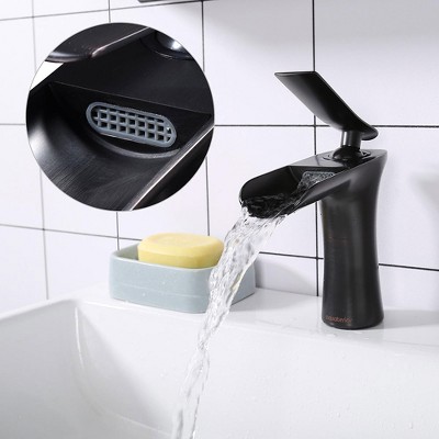 - Aquaterior Waterfall Spout Single-Handle Faucet comes with a arched spout perched on a square base in a modern design