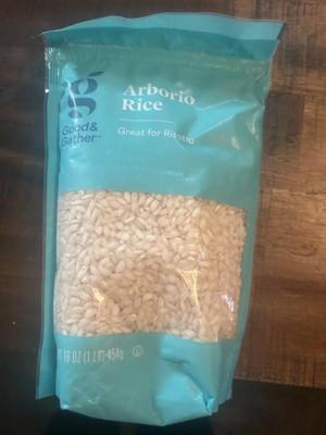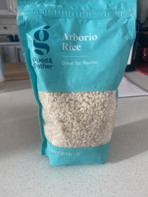 Good & Gather Arborio rice is an extremely good value on hard-to-find Arborio rice. The one-pound bag is a reasonable quantity to make risotto, etc. Good consistency and foolproof. Would definitely buy again at this price.