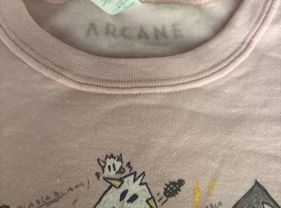 It is the CUTEST merchandise of arcane i own!! at first seeing basically no actual commenting reviews made me doubtful, as well as seeing reviews of just a long sleeve shirt for a caitlyn crewneck. i’d thought the same thing would happen to me but no it’s exactly how described! it’s pretty thin but soft and i’m in LOVE!