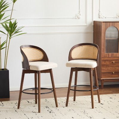 Arceso 26" Bar Stools Swivel, Wood Counter Height Bar Stools for Home Kitchen, Light Beige Gray