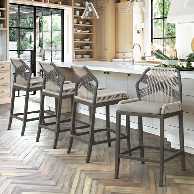 Overall Size: 19"W x 19" D x 35.8" H; Seat: 18" W x 17.3" D x 26" H; Back: 15" W x 12.6" H. These countertop stools feature bent wood frames and metal reinforcement, with simple lines that blend vintage and modern aesthetics. The bar stools can bear up to 330 lbs and are ideal for kitchen counters, islands, restaurants, cafes, bistros, and bars. - 【Effortless Maintenance】: