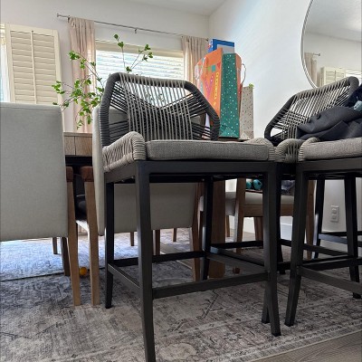 Arceso Outdoor Bar Stools, Rattan Outdoor Counter Height Bar Stools Set of 2, 26.5" H Woven Rope Patio Bar Chairs with Aluminum Legs,Slate Gray