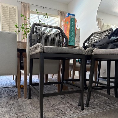 Arceso Outdoor Bar Stools, Rattan Outdoor Counter Height Bar Stools Set of 3, 26.5" H Woven Rope Patio Bar Chairs with Aluminum Legs for Kitchen
