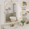 Arch Bathroom Mirror 20x30, Gold Wall Mounted Vanity MirrorProduct Description:Add a touch of elegant sophistication to your space with this beautifully proportioned 20x30 Inch Arch Bathroom Mirror, featuring a luxurious gold metal frame and gracefully curved silhouette. The compact yet impactful design makes it perfect for smaller walls while still creating a striking visual statement. Ideal for powder rooms, bedrooms, and entryways, this mirror combines architectural charm with practical functionality. Crafted with premium materials and featuring versatile installation options, it effortlessly enhances any interior with its refined aesthetic.?Key Features:1. Elegant Compact DesignThe perfectly proportioned 20x30 inch dimensions with gracefully arched top create an elegant focal point that fits beautifully in smaller spaces. The curved silhouette adds architectural interest without overwhelming the room, making it ideal for powder rooms, compact bathrooms, and cozy living areas.2. Durable Gold Metal FrameCrafted from high-quality aluminum alloy with a luxurious gold oxidation finish that maintains its beauty over time. The minimalist frame design features a sophisticated matte texture that complements various decor styles while providing reliable performance in different climate conditions.3. Premium Optical Clarity GlassExperience crystal-clear reflections with upgraded explosion-proof glass that ensures distortion-free imaging. The advanced glass technology provides fast fog dispersal and resists oxidation, making maintenance effortless while delivering reliable performance in humid environments.4. Versatile Installation OptionsEnjoy flexible placement with both secure wall mounting and freestanding leaning capabilities. The mirror comes with pre-installed reinforced hooks and all necessary hardware for easy installation, allowing you to choose the perfect placement method for your space and decor preferences.5. Secure Protective PackagingArrives in custom-designed packaging that ensures safe delivery. Includes comprehensive installation hardware and clear instructions for quick and hassle-free setup, allowing you to effortlessly incorporate this elegant architectural mirror into your home.Specifications:? Dimensions: 20" x 30"? Shape: Arched Top? Frame Material: Aluminum Alloy? Frame Finish: Gold? Glass: Explosion-Proof, Fog Resistant? Installation: Wall Mount or Leaning? Included: Pre-installed Hooks, Hardware, Instructions? Room Compatibility: Bathroom, Bedroom, Living Room, Entryway? Style: Modern Architectural
