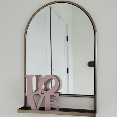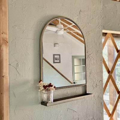 Arched 18"x26" Metal Frame Wall Mirror with Shelf Brass Finish - Hearth & Hand™ with Magnolia