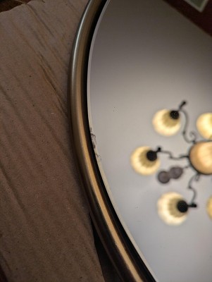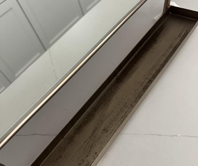 Q: What are the overall dimensions of the arched brass frame mirror with shelf?