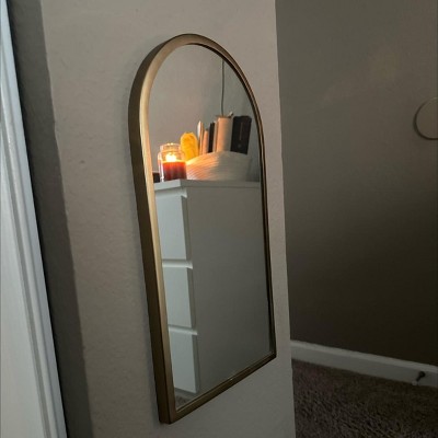 Love this arched Hearth & Hand mirror. The gold brass color on trim is just the right color. I have it leaning on my mantle in bedroom. It’s perfect to hang or lean. Light weight-Does come with hardware for hanging. Another Hearth & Hand item for my home. Recommend to all. Go get one today, you will love it!! Thank you Target! ❤️
