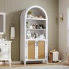 Arched Bookcase with Doors - 5 Tier Open Display Shelf with Rattan Decor