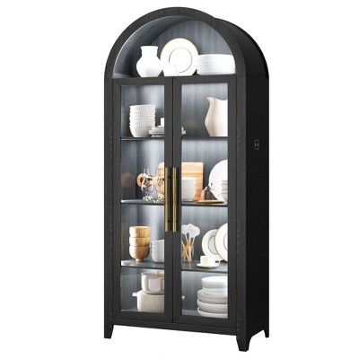 Arched Bookshelf with Doors Farmhouse Bookcase 15.83in Depth Display Storage Shelves 71.4in Tall Wooden Display Cabinet Rounded Bookcases