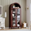- The arched top and stylish glass doors give the cabinet a refined and elegant appearance, adding beauty to your space. Additionally, Its open layout allows for easy display and access to items.
