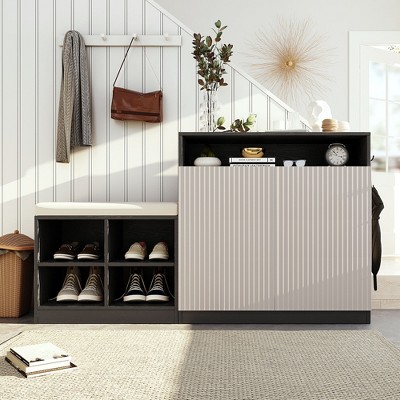 Arched Kitchen Pantry Storage Cabinet with 5-Tier Open Shelves, Farmhouse Display Cabinet for Kitchen, Dining Room, Living Room, White