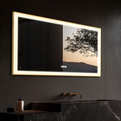 Arched LED Bathroom Mirror, Gold Bathroom Mirrors with Anti-Fog, with Frontlit and Backlit Dimmable LED Mirror£¬3 Color Temperature