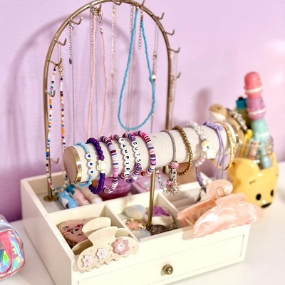 Arched Necklace and Bracelet Standing Drawer Organizer Jewelry Box - A New Day™ Gold/Cream