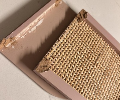 Since this item was not packed well and did not have instructions, I’m not sure that I screwed them together properly. With that said, I was expecting more rattan and less metal. The mauve/pink color is nice and neutral but definitely decorative rather than made for heavy books.