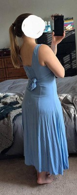 [This review was collected as part of a promotion.] I was looking for a dress for our engagement photos at the beach, and thought this dress would be perfect! I bought a medium, but it seemed a little big on me and I felt the little slit underneath the chest area could show a little more than I wanted for photos. I love the material and style. Maybe if I bought a size smaller and didn’t wear it for photos, I would’ve kept it. I ended up returning it but found some other great dresses from here.