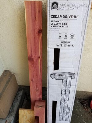 Crafted from beautiful, aromatic natural red cedar, the sturdy Easy-Install Cedar Drive-In Post is a terrific addition to any residence. Slight variations in the wood grain also give the post a one-of-a-kind appearance. This drive-in post comes with a steel anchor, which eliminates the need for digging or installing the post in concrete. Pre-notched for easy assembly, the post is intended for use with medium-sized and large mailboxes.