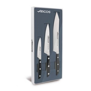 Arcos Manhattan 3pc Starter Set Black: Stainless Steel Cooking Knives, Forged Cutlery Set, Includes Santoku, Chef & Paring Knives