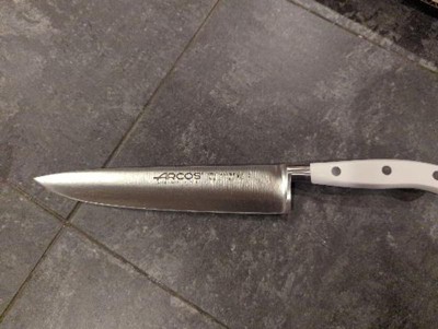 I received product reimbursement in exchange for my honest review. I was looking forward to trying out the Arcos chef's knife. First impression: the knife is beautiful. Stainless steel blade is sharp and the white handle comfortable and elegant. The knife is super sharp and cuts with ease and precision. It makes doing any cutting work fun and enjoyable. It also adds a bit of sophistication to my kitchen. I would recommend it to any aspiring chef, novice or professional.