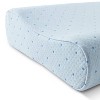 Our Arctic Sleep Cool-Blue Memory Foam Pillow is made with a revolutionary cooling memory foam - the infusion of blue cooling gel into the memory foam helps to regulate the temperature of this pillow while you sleep; that means if you have a tendency to get very hot while sleeping, you can experience a cooler, more inviting sleep thanks to the temperature regulating gel infusion. Our Cool-Blue Memory Foam Pillow is also ventilated to make the pillow breathable and further helps prevent heat build-up while you sleep. It's contour shape combines both head and neck support to help provide the ultimate in stress relieving support; combine this with our super soft memory foam and cooling fabric cover and your head will feel like it is resting on a cloud! Removable cover is easy care machine washable.