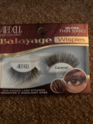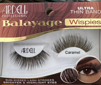 - Sun kissed Balayage Wispies: Ardell’s all time favorite wispies boosted with a modern, balayage shade. Made with extra long fibers stacked to total volume. Adds glamour without looking overdone. Crafted with a flexible band for long-lasting wear.