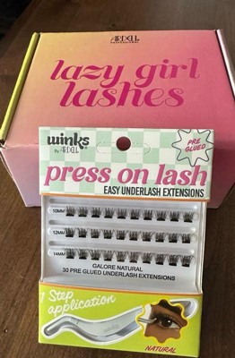 [This review was collected as part of a promotion.] Recieved a complimentary sample of Ardell Winks Press On Lashes from Influenster. These are a game-changer!! The pre-glued design makes them incredibly easy to apply even for someone like me who isn't a pro at lashes. They save a ton of time which is a huge bonus when you need to quickly glam up. The adhesive held up well throughout the day without any need for touch-ups .It enhances your eyes without feeling over-the-top or heavy perfect for someone who prefers a more understated style. Plus they come in three length sizes and are reusable up to four times! I highly recommend trying them out you won't regret it!