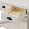 Elevate your bedroom's ambiance with the Arden 2-Drawer Wood Nightstand, a perfect blend of functionality and elegance. Crafted from solid pine wood, this nightstand showcases a serene driftwood white finish, enhancing the natural wood grain and unique tonal variations that make each piece distinct. The dimensions of the drawers, 12"W x 14"D x 3 1/2"H, are ideal for organizing personal items, while the sturdy metal glides ensure smooth operation. Complementing the drawers are the metal pulls finished in an oil-rubbed bronze, adding a touch of sophistication.The spacious open shelf, measuring 24"W x 18 1/2"D x 12"H, offers additional storage or display space for books, decorative baskets, or your favorite nighttime essentials. Whether your decor style leans towards modern rustic or a boho retreat, this nightstand's versatile design integrates seamlessly into any setting. Durable and well-constructed, this piece promises longevity and style, making it a valuable addition to your bedroom furniture collection. Assembly is required, ensuring you can personalize the setup to best suit your space.