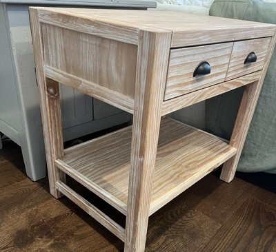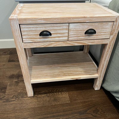 Arden 2 Drawer Wood Nightstand with Open Shelf Light Driftwood - Alaterre Furniture: Solid Pine Bedside Storage