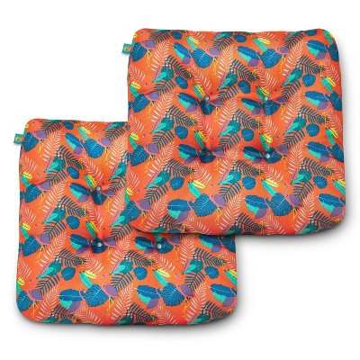 Arden 2pk 20"x18" Outdoor Wicker Seat Cushion Onyx Cebu: UV & Water-Resistant, Tropical Leaf Print