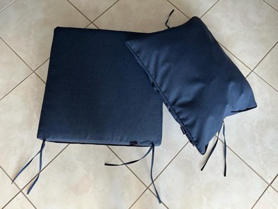 [This review was collected as part of a promotion.] This foam seat cushion set works and looks wonderful. The dark blue sapphire cushion covers are a flattering shade that complement my existing outdoor seats. The material itself is durable and comfortable. It was quick and easy to assemble and the 2-ties included on each cushion cover allow them to be securely attached to the chair it’s placed on. The cushions maintain their shape while being incredibly lightweight and easy to move/carry. I use them on my enclosed balcony, which protects them from many of the elements, but the instructions say that the cushions dry quickly, are fade-resistant, and easy to clean (with soap and water). I particularly like the firmness of the bottom cushion (foam fill) and wish the back cushion (poly fill) had the same type of support.