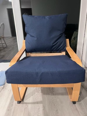 [This review was collected as part of a promotion.] Super comfortable and love that the cover and the cushion cover can be removed to wash! Very convenient and I like the water resistant fabric. Bottom cushion has strings so you can secure it to the leg of the chair.