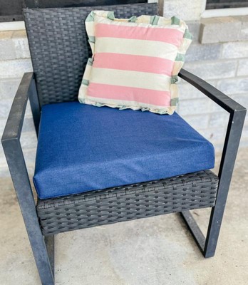 [This review was collected as part of a promotion.] The Arden 19”x19”x3.5” outdoor cushion kit includes 1 foam and 1 cushion cover. The foam cushion is durable, made with polyurethane pro foam and is made to keep its shape. The cushion cover seems to be very durable. It’s made with 100% outdoor polyester fabric with TPU laminated for rain proof protection. Which helps with the rain to just roll off the cushion with ease. It dries faster than my old cushion did, which is great. It’s easy to clean with soap and water. It also, has two sets of ties on the cover to keep your cushion firmly in place. They are very comfortable and I think they will last a long time in my opinion. #complimentary #arden #patio