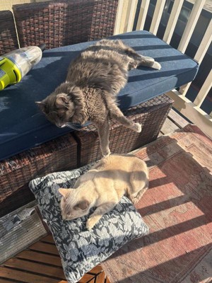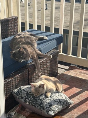 [This review was collected as part of a promotion.] Cat approved!! Besides the pet hair that sticks like glue to this fabric, I can’t find much that I don’t like about this cushion! Cleans easily and sustains rainy weather. It’s sturdy but comfortable. Perfect for outdoors.