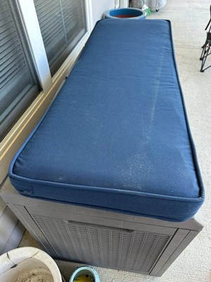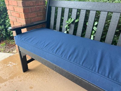 [This review was collected as part of a promotion.] The quality of this cushion is excellent—it feels sturdy and well-made, with fabric that seems like it will hold up well to the elements. The classic navy color is rich and looks great on my bench. It was slightly longer than I expected, but it still works well for my space. One thing to note: if you see any yellow in my photo, that’s just Georgia pollen doing its thing this time of year! Overall, I’m very happy with this cushion and would recommend it to others looking for a durable and stylish outdoor cushion.