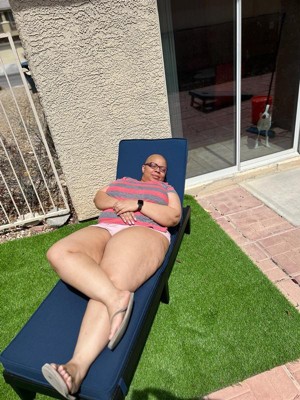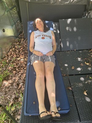 [This review was collected as part of a promotion.] This lounge cushion came at a perfect time to be able to review in both rainy and warm weather. When we first put it on it was overcast and we were in the hot tub. Once we got out it then started raining. This pic I took is about a week after the rain and now it’s about 80 degrees out and I was able to lay out on it and it was not only dry but so comfy also. The covers are super durable and love the color as well.