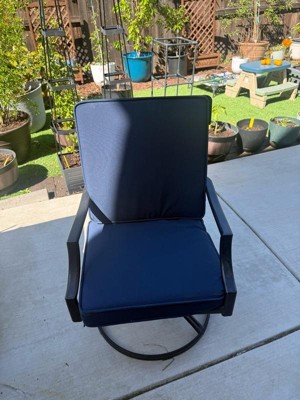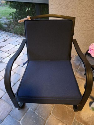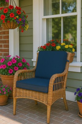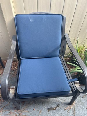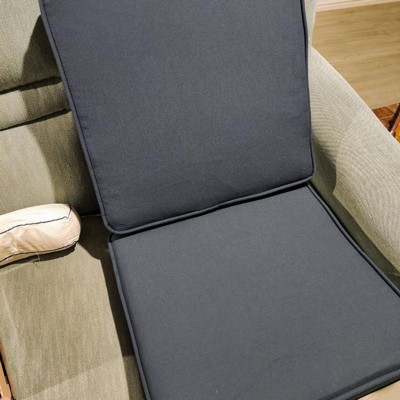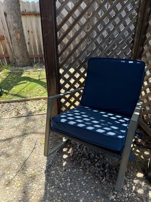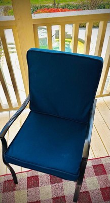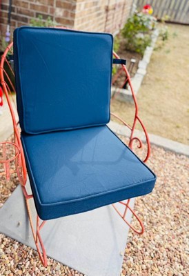 [This review was collected as part of a promotion.] Arden Selection Double Outdoor Dining Chair Cushion: ProFoam, Rainproof, and Fade Resistant in Classic Navy. Easy to assemble , the cushion is thick and incredibly comfortable to sit on.