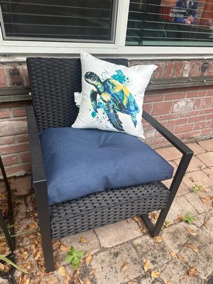 [This review was collected as part of a promotion.] I’m really happy with this Arden outdoor seat cushion. The fabric feels thick and high-quality, and the cushion itself is very plush and supportive. It fits my chair perfectly and doesn’t slide around thanks to the tie straps. I love that it’s water-repellent and fade-resistant—it’s already handled rain well and still looks great. The sapphire blue color is vibrant and adds a nice pop to my outdoor space. Overall, it’s comfortable, well-made, and feels like it will last a long time.