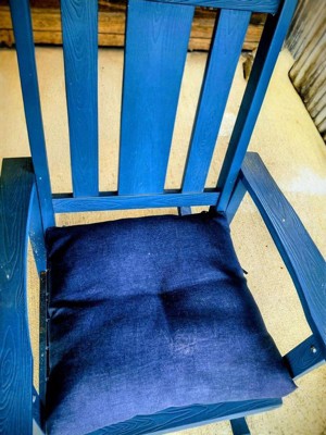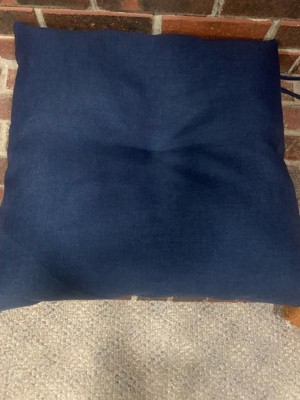 [This review was collected as part of a promotion.] This cushion is thick and made of a nice material. The water wicks right off of it. The color of the cushion is perfect! A nice navy with no marbling of other colors. It ties right onto the back of the chair. Now I need to find 3 more!