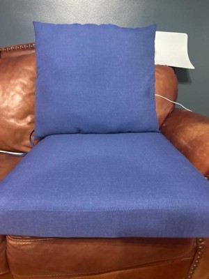 [This review was collected as part of a promotion.] I a patio/porch chair that was missing the cushions and every time I sat in my chair it was very uncomfortable. I received the cobalt blue cushions and placed them in my chair and I have sat on my chair everyday since them drinking my coffee or any beverage. The durability and comfort is great and love that it is water resistance and if I forget to bring it in it won’t get ruined.