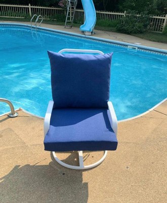 [This review was collected as part of a promotion.] This outdoor chair cushion is not only nice looking, it is durable. It fits nicely onto my deck chairs, and I really like the navy blue color. It makes a great addition to my pool area