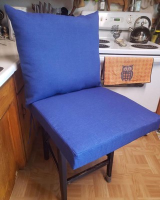 [This review was collected as part of a promotion.] These outdoor cushions are such great quality and they are BIG! I'm in the process of having my outdoor chair repaired and I thought this set would look amazing on mine once it was finished. The color is a true royal blue and the cushions themselves are so soft and firm. I'm so impressed, they look fantastic even displayed on a normal dining chair like I did for this review. 5/5