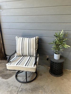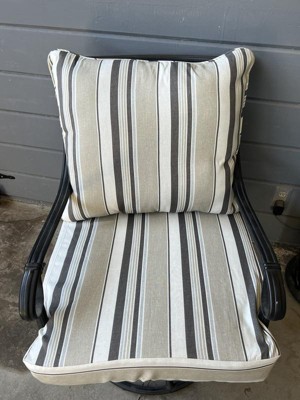 [This review was collected as part of a promotion.] I got a Arden Selections earthFIBER Outdoor Deep Seat Set 24 x 24, Taupe Grey Boardwalk Stripe and they look great ! It really makes my outdoor area pop with color .The material they are made of is top notch and I know that they will last for a very long time .