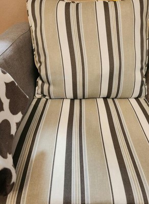 [This review was collected as part of a promotion.] I am very happy with my Arden Selections EarthFiber Outdoor Deep Seat cushion. It is deep indeed and super comfortable for the hippy folks. The cushion measures 24x24 and I received it in a lovely taupe grey striped color that just matches my aesthetics completely. I am currently on the market to purchase three more to seal the deal and dress my other outdoor chair. It’s water resistant, super comfortable and deep; what more could you need.