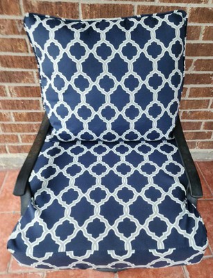 [This review was collected as part of a promotion.] The Arden Selections earthFIBER Outdoor Deep Seat Set 24 x 24, Sapphire Blue Garden Trellis is really a beautiful pattern. The color is a deep blue which goes well with my other patio stuff. The cushion is made well and comfortable to sit on for long period of time. It was easy to attach to my chair.