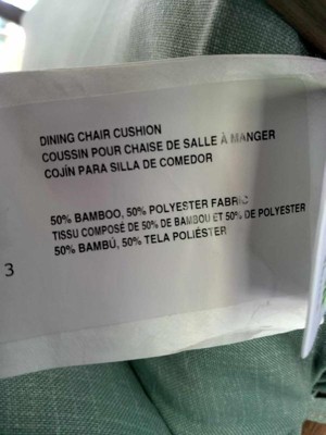 [This review was collected as part of a promotion.] The Arden Selections earthFiber Outdoor Dining Chair is top-notch. I love that it is made from a plant-based fabric. It also utilizes an eco-friendly blend of bamboo viscose and polyester as well as a partially recycled fill. I'm a huge fan of the responsibility of resources put into this beautiful earth-tone sage green cushion. It is very easy on the eyes and back. The chair is easily tied onto a chair frame, so it stays set. It easily cleans up with a little soap and water. The chair is water and UV-resistant due to a PFAS-free CO treatment that is skin-safe. Every aspect of this chair was worked on in a fine thought-out eco-consciousness planning. I love the look, feel, and guilt-free comfort.