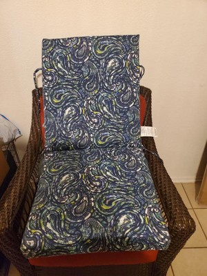 [This review was collected as part of a promotion.] Arden Selections - Arden Selections earth FIBER Outdoor Dining Chair Cushion 20 x 20, Sapphire Blue Ridge Paisley, reminds me of Picasso's painting "Starry Night"! The colors are perfectly blended, and the cushion fits perfectly into my wrought Iron rocking chair! Very comfy and stylish!
