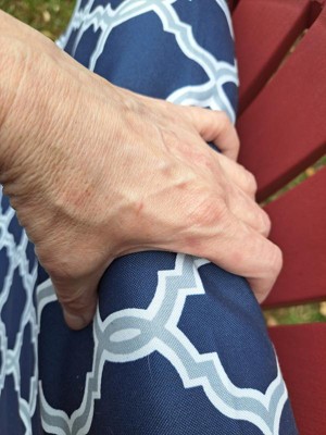 [This review was collected as part of a promotion.] There is a lot to love about the Arden Selections earthFIBER outdoor cushions. Aside from the responsible eco-conscious material used in its construction, the cushions are simply lovely. They are fade and water resistant, super easy to clean(just soap and water) and fit a variety of chair designs. The blue trellis pattern is classic and trendy at the same time. I could not be happier.