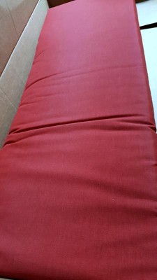 [This review was collected as part of a promotion.] I received this to try. Cushion is nice thick padding and the covering is beautiful red. The texture is nice and to plasticity like done outdoor cushions. I really love this and look forward to much use.