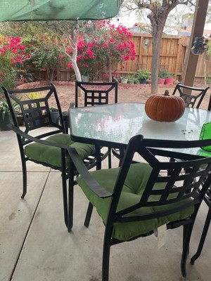 [This review was collected as part of a promotion.] These cushions are very comfortable and super cute as you can see on my outdoor dining table. I’ve had them for a while now and they are very durable. I also have two dogs and the fabric is very resistant and I think it’s rain resistant as well!
