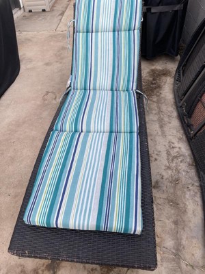 [This review was collected as part of a promotion.] I recieved this cushion and the first thing I noticed is the colors are beautiful. It is a striped pattern and the fabric is straight all the way down. The seams look very sturdy and the fabric looks durable to stand several summers on a chair at the pool. The length is perfect for a chaise lounge chair.